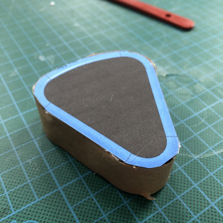 Since cardboard isn't the prettiest of materials to be working with, I found some paper packing tape to neaten up the prototype around the edges. I repeated this same process for the top 'glass' section of the HUD.